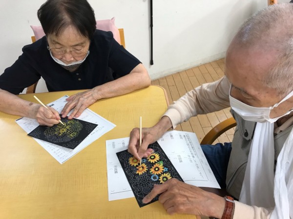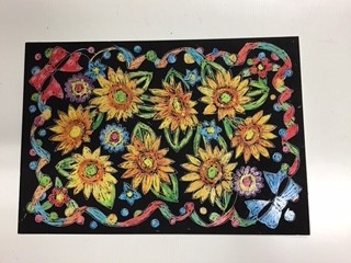 画用紙にクレヨンを何色も重ねて塗りつぶし、