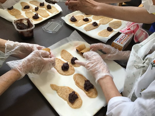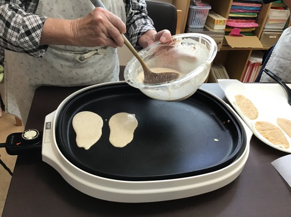 生地をうまく流すのもコツがいるので、慎重にホットプレートに流し込みます。
