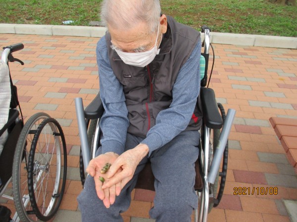 どんぐりを手にした入居者様