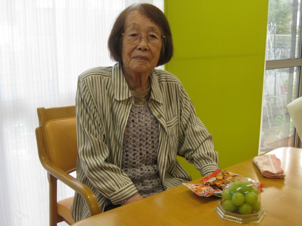 孫とひ孫が来てくれたのと話して下さいました。『ここ、開かないのよ』と寂しげでした。ぶどうとお菓子のプレゼントに喜ばれていました。