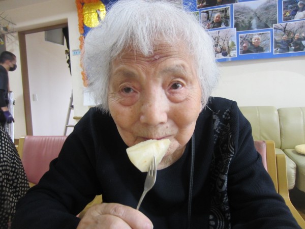 園庭の花を摘んだり、日光浴を行ったり、シャボン玉遊びしたり、梨を食べたりしていまーす。
