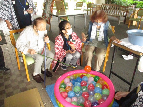 ヨーヨー釣りです!がんばれ!皆さんの笑顔がまぶしいです!とても楽しそうです!