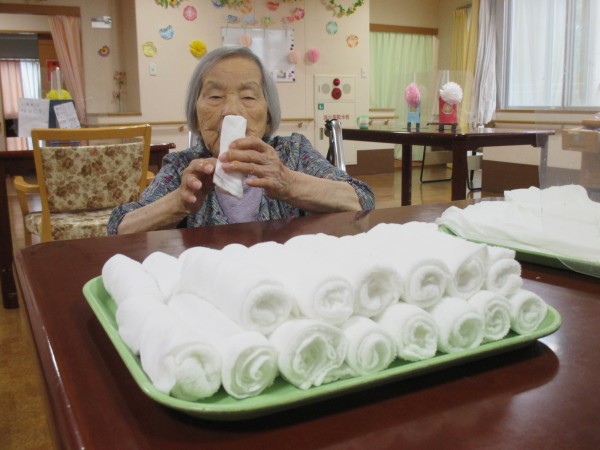 本日は、入居差様がおしぼりを作るのをお手伝いして下さったので