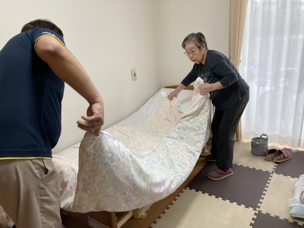 週に一度のリネン交換、いつもスタッフと一緒に頑張っています(^_^)v