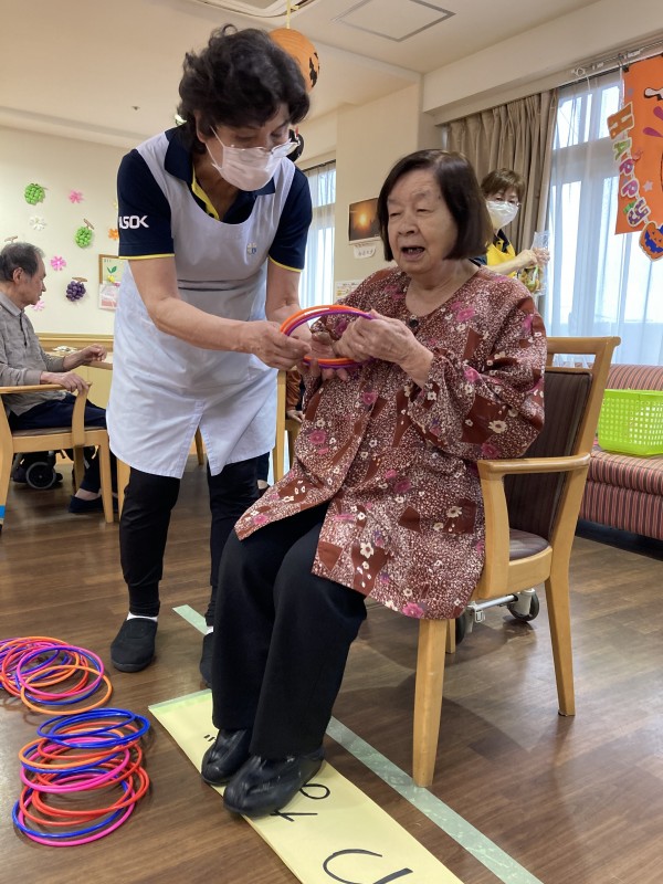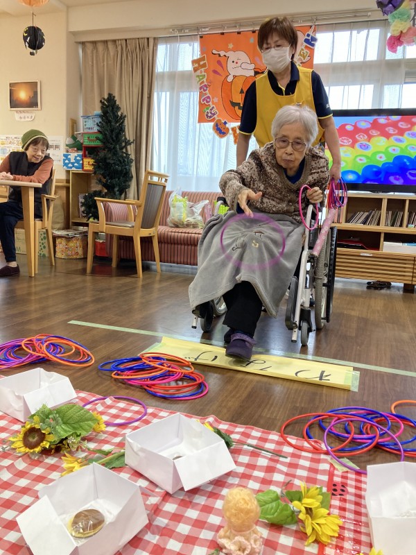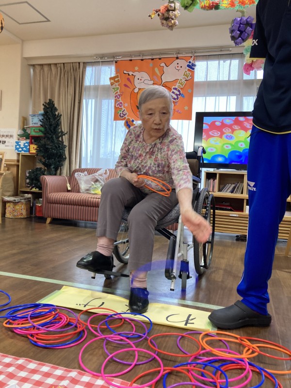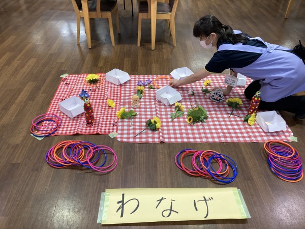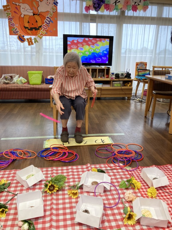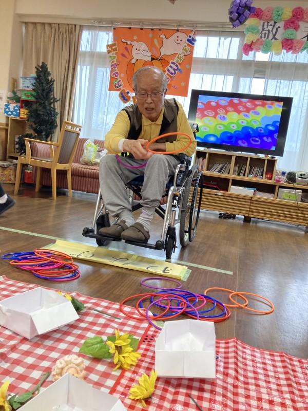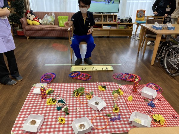 今月の3階のレクは輪投げでお菓子をゲット!です(*^▽^*)