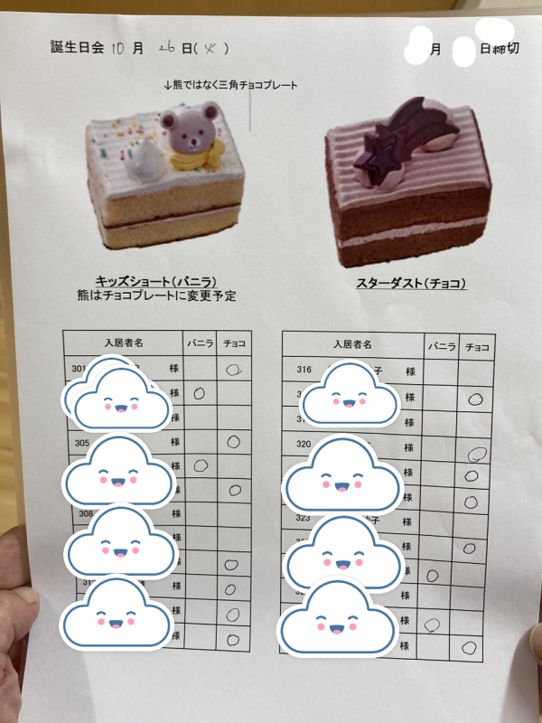 毎月誕生日ケーキをご利用者様に選んでもらっています。