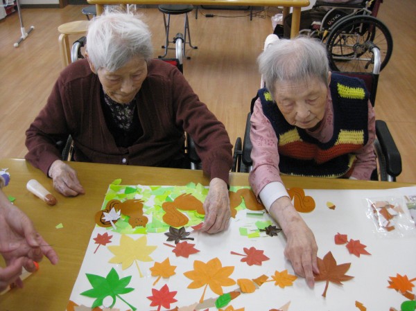 秋の貼り絵ということで、紅葉をメインに作成しました☆