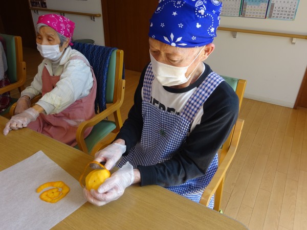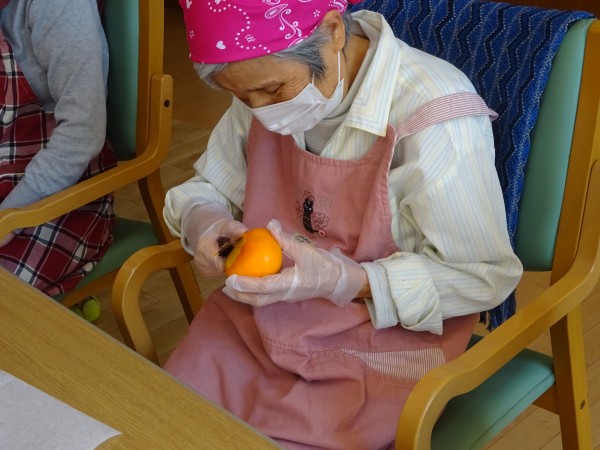 皆様上手に包丁を使って柿の皮むきが出来ました☆