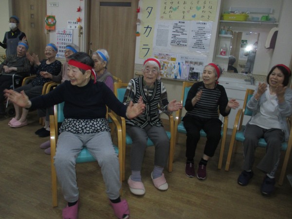 ご入居者様も声を出しながら楽しく踊って下さいました。