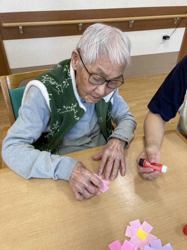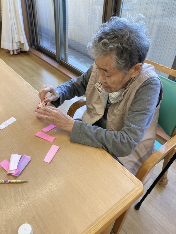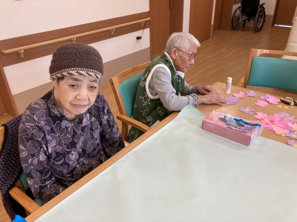 午後は、壁画用のコスモスを作りました。