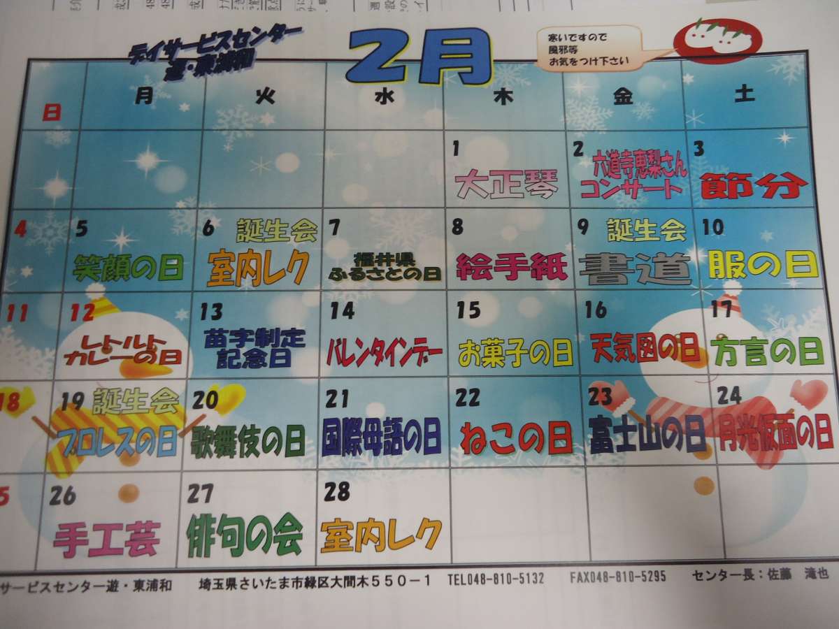 2月のレクリエーション予定はこのようになっています♪