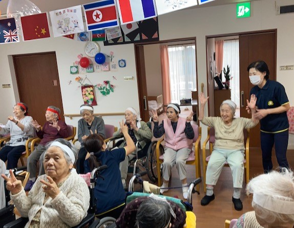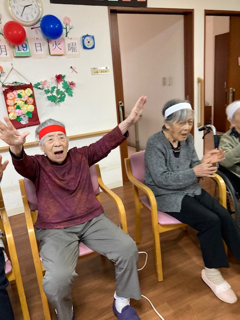 インストラクターの動きに合わせて、右へ左へ体を動かし、手をたたきダンスを楽しみました!(^^)!