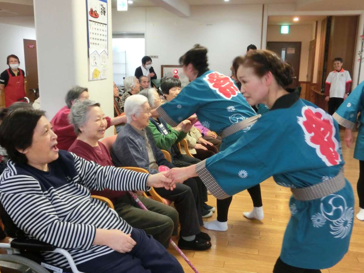 最後にアンコールとして職員や入居者と入り交えて踊る
