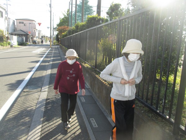 散歩日和の秋晴れのなか、ご入居者様は散歩を楽しまれました。