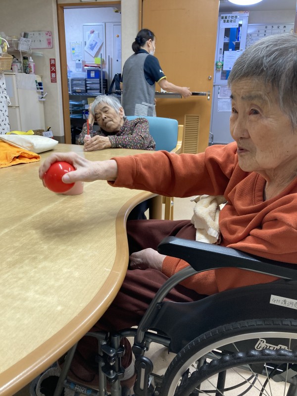 こちらでは机の上でボールを転がしてボール投げをしています!