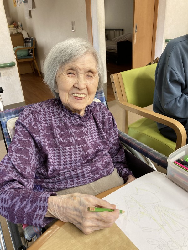 となりのテーブルではぬり絵に取り組んでいます!次にでこを塗ろうかな…と考えながらぬりえをされていました!!