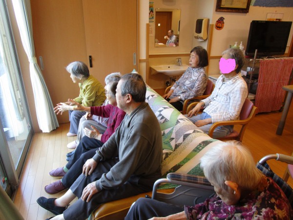 例年だと園児さんはホームの中を見学したり、入居者様と一緒に手遊びや歌を歌って一緒に過ごすのですが、