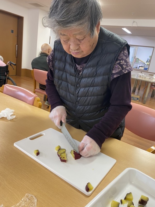 ◉さつまいも、旬ですね〜♡←包丁で小さくcutしていただく。