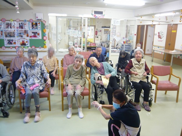 先生の元気な声に圧倒されながらも、利用者様も
