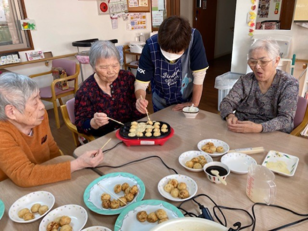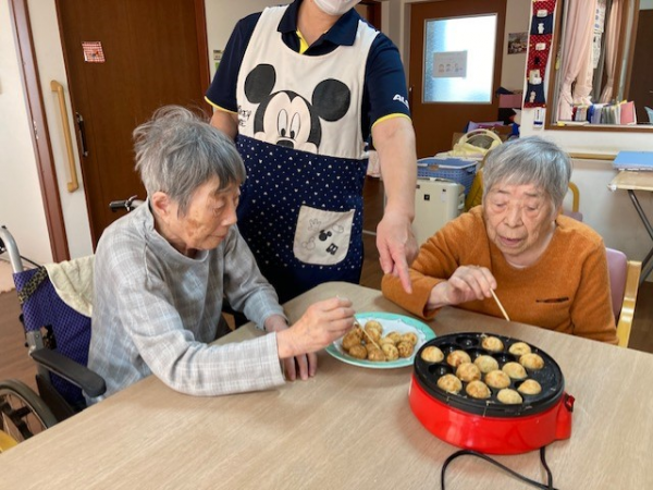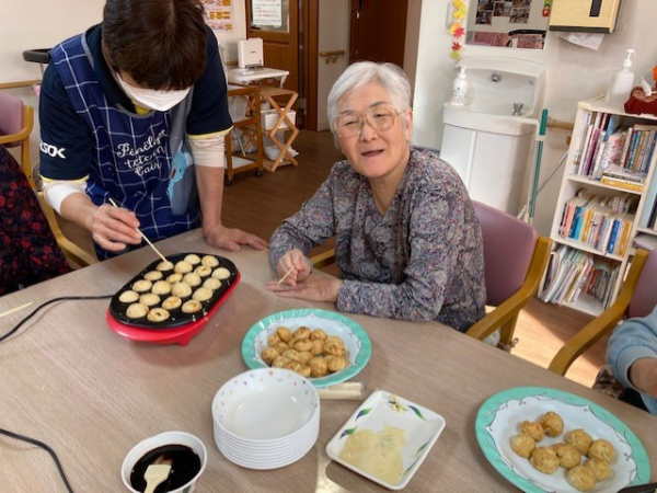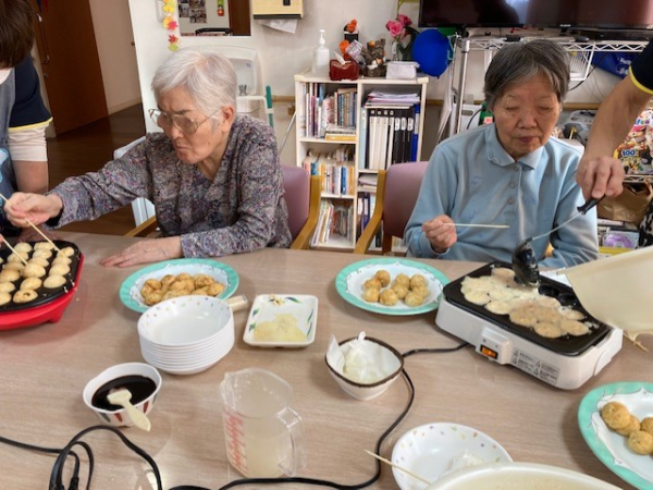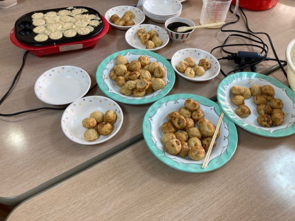 今月は「おやつレク」にて、たこ焼き作りを楽しみました!!!