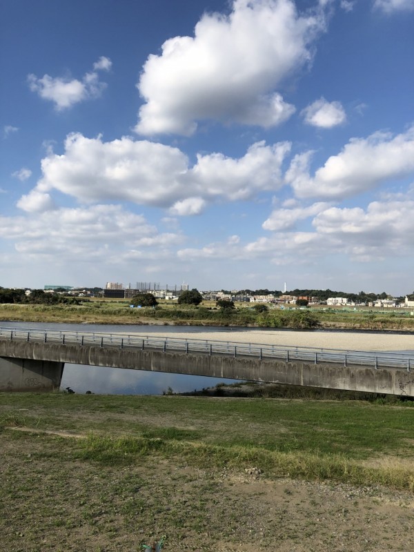 街にはブタクサ(写真左/上)やススキ(同中/中)が実り、また多摩川にもさわやかな秋晴れがふりそそいでいます(同右/下)。