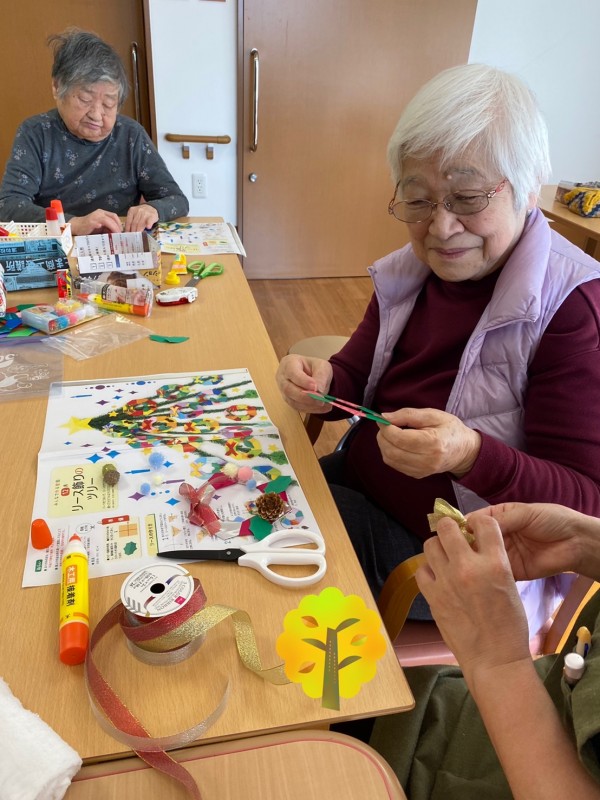 折り紙を折る、組むなどの作業を通じ、手指の巧緻性の維持・向上を図る。