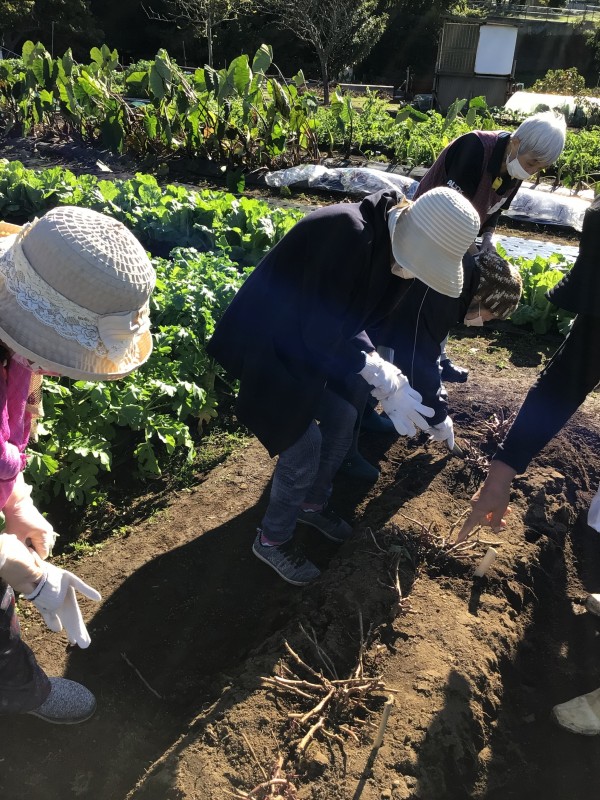 近所の堀江さんの畑に招かれて、芋掘りに行ってきました。