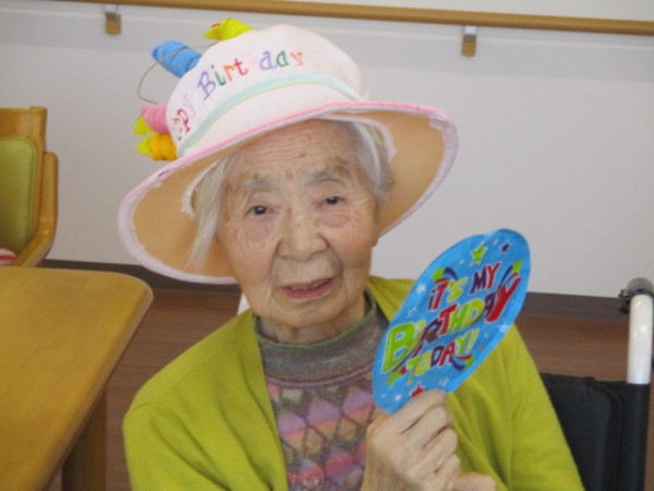 歌を合唱しケーキ????を召し上がられお祝いをしました!! あら( ^ω^)・・・誕生日なの?本当に! 嬉しい、有り難う!!元気で過ごせますようにとのお言葉でした。