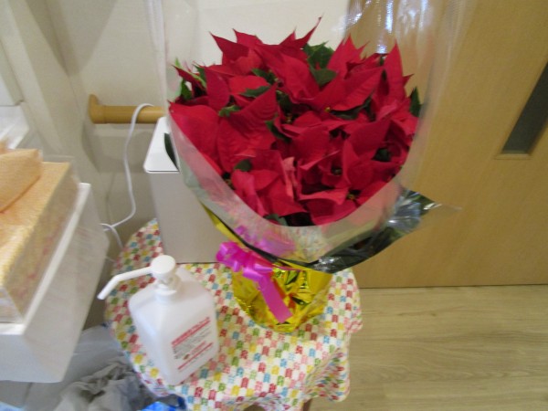 最初の写真は、去年末に業者さんからいただいたポインセチアです