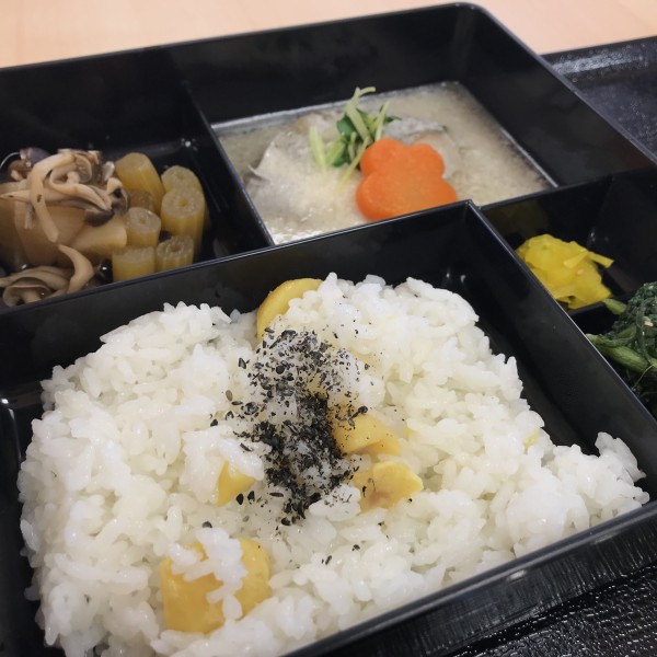本日は、秋を感じて頂きたく栗御飯をお召し上がり頂いてます♬