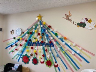 せせらぎの壁にはサンタクロースがお目見えしています。今年も残り1カ月。