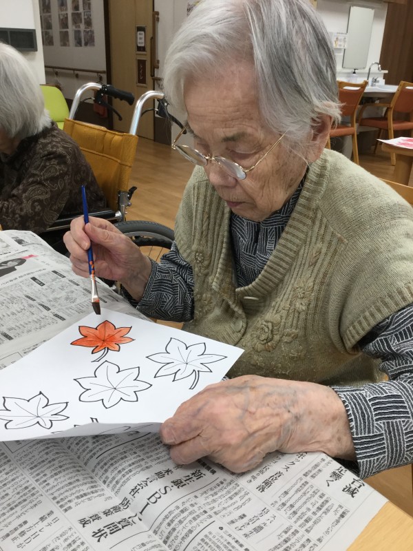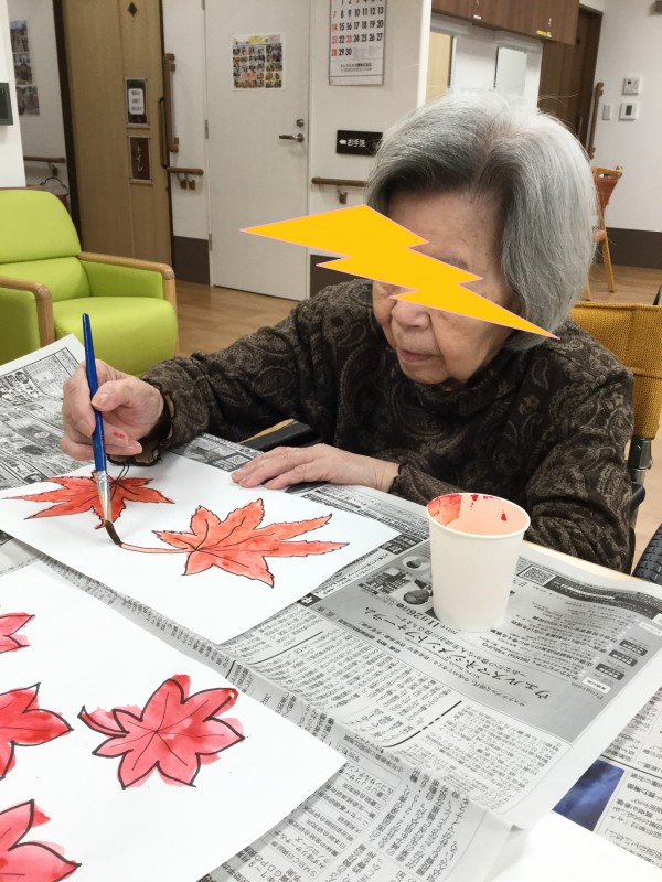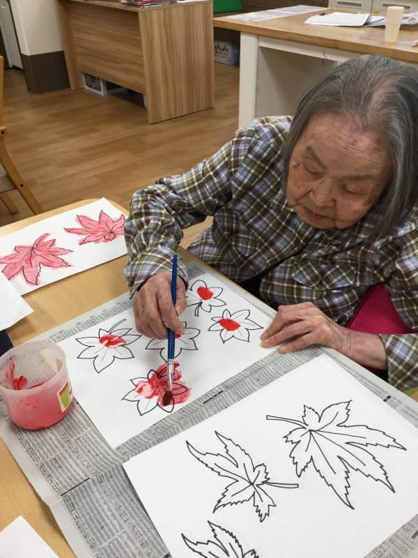 せっかくなので紅葉を絵の具で塗っていただきました!