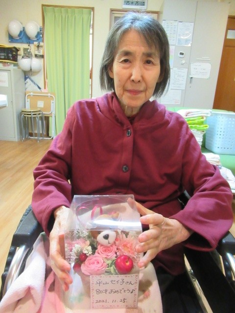 そんな中、今月お誕生日を迎えられた入居者の方にご家族が直接プレゼントを渡しに来ました(#^^#)