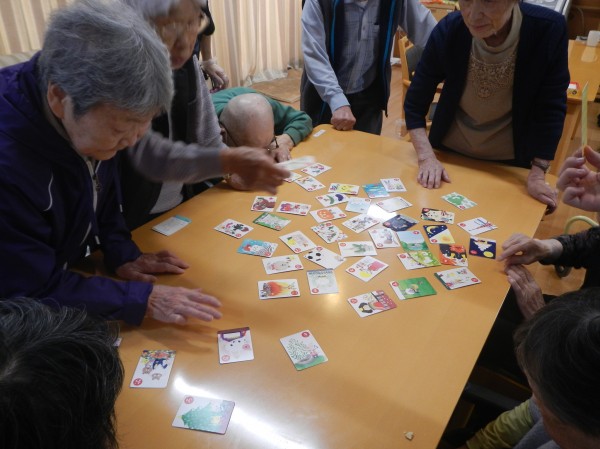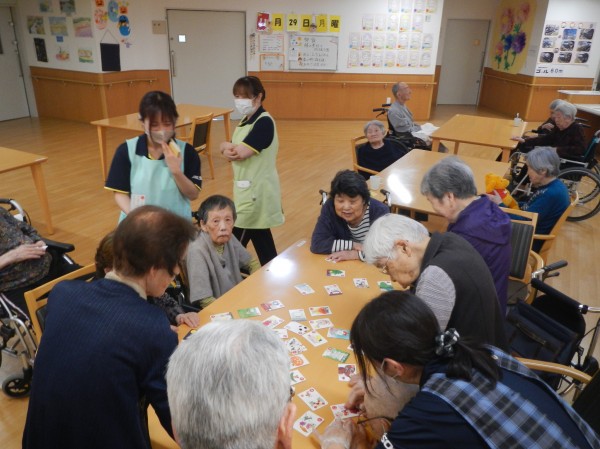 「犬も歩けば~」と職員が読み上げると「あった!」と手を伸ばすご利用者様。