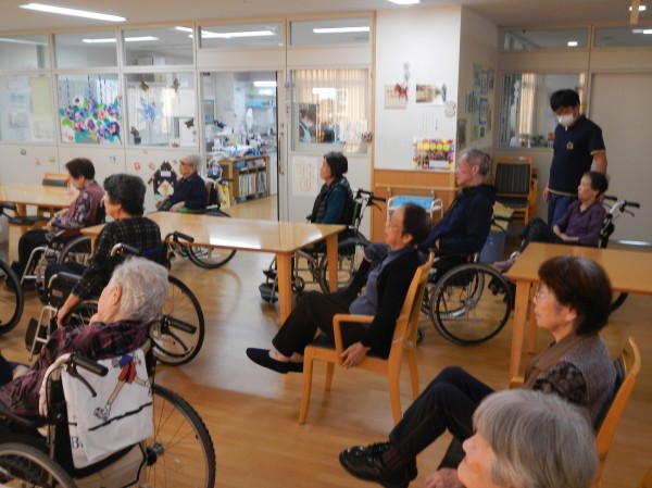 いつも以上にハードな運動教室に、ご利用者様みなさんも、リモートでテレビ画面に映し出されるトレーナーの動きや声に合わせ、元気に体を動かされました。