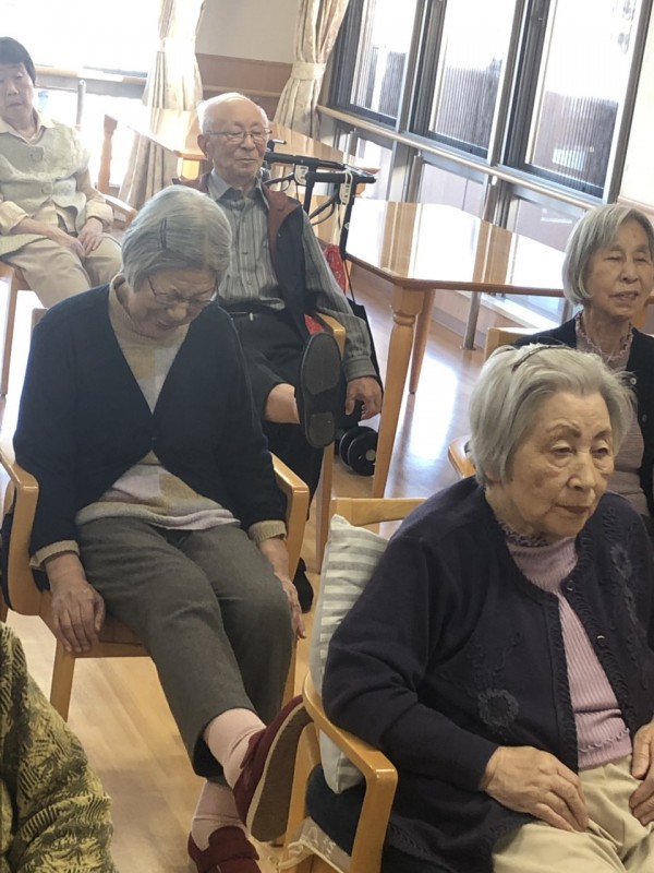 手や足を上下させたり、座ったまま両足を前に伸ばしたり・・・