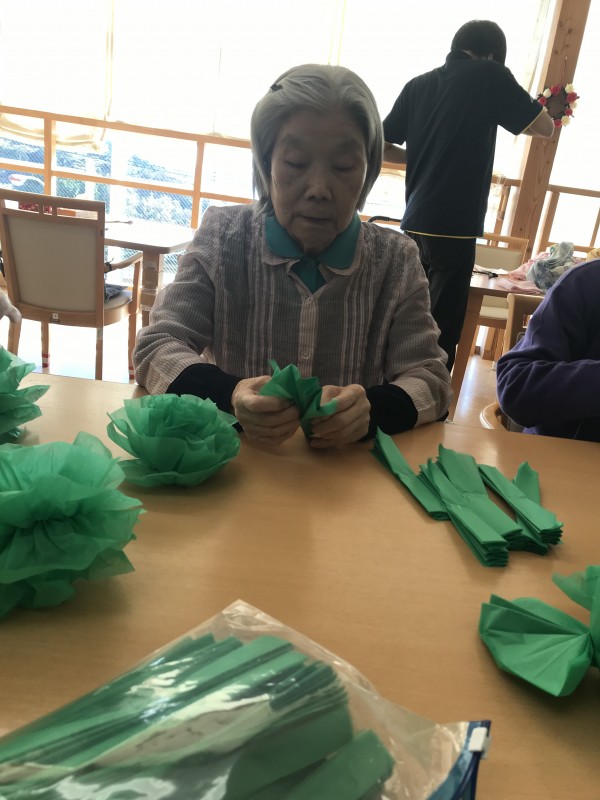 1階の利用者様は輪っか作りです。