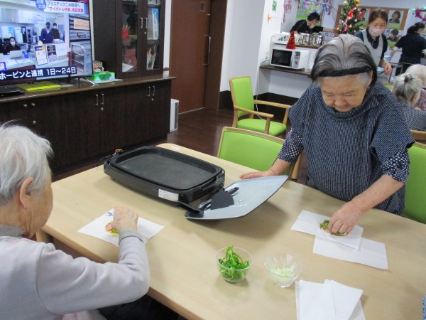 ピザは大好評だったので、また皆さんに野菜を切ってもらって