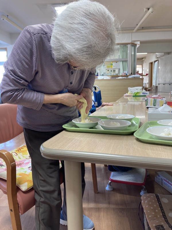 みなさん1人1人頑張っておいものクリームを絞りました。