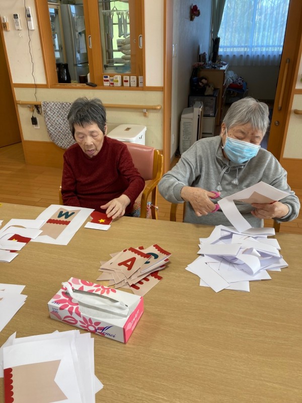 クリスマスの飾りつけの為イラストをハサミでカット!
