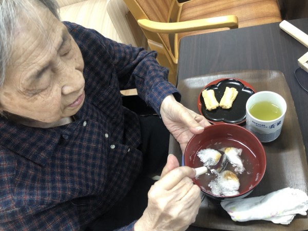 このお汁粉はご家族様がおやつの時間に持参され、一緒に召し上がっていらっしゃいました