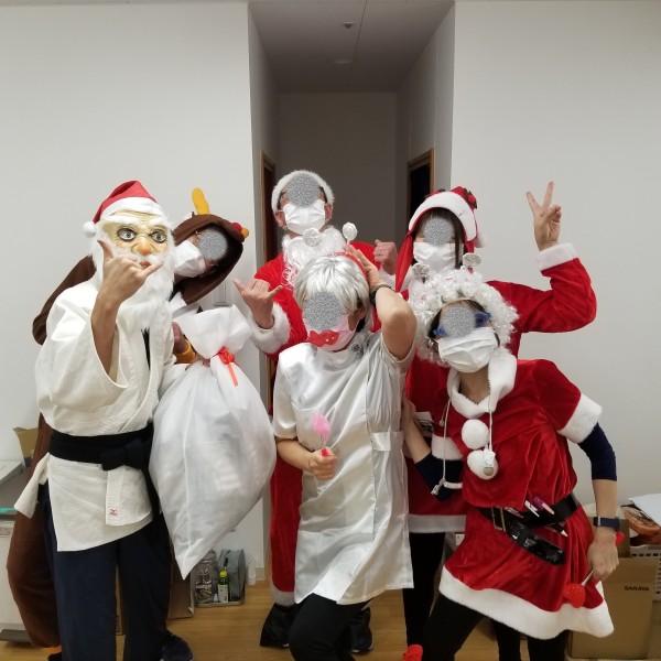 まずはスタッフの衣装と昼食(クリスマスメニュー)のご紹介です