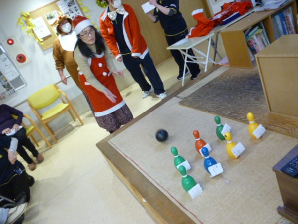 さあ~ピンを倒すとクイズに答えるというゲームです