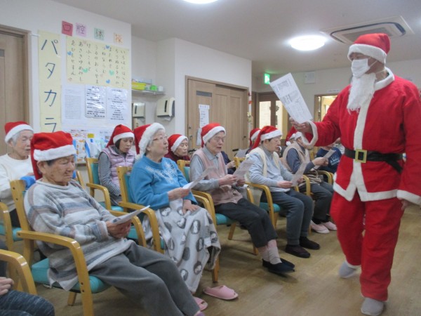 ホームにもサンタクロースが登場し、ご入居者様も一緒に歌を歌ったりゲームに参加されました。