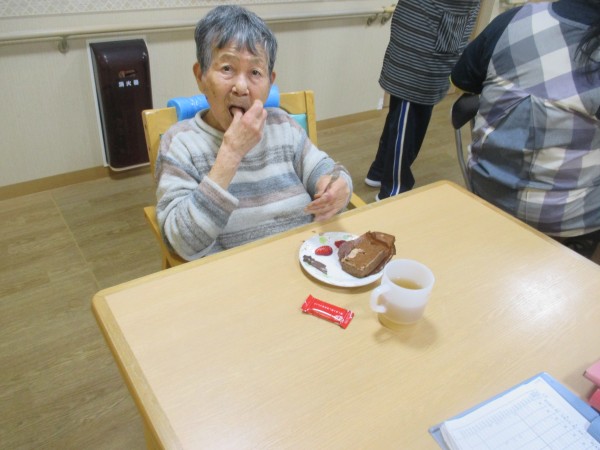 今年はチョコレートケーキにイチゴを添えてご用意いたしました。