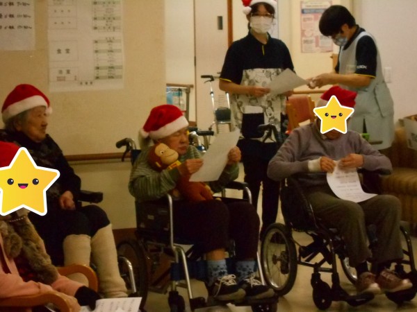 私たちショートステイみんなの家・大宮吉野町でも、12月という事でクリスマスレクを開催。職員一同、サンタクロースや聖歌隊員・トナカイ等に扮して、参加されたご利用者様達とクリスマスを楽しんで頂きました。