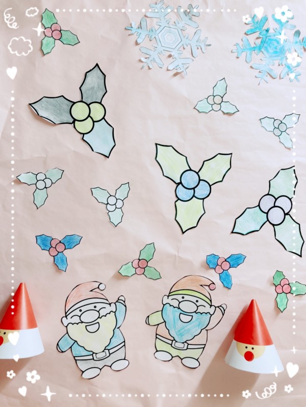 みなさんの個性がそれぞれ出ています。塗り絵を切りとり貼ってくださいました。