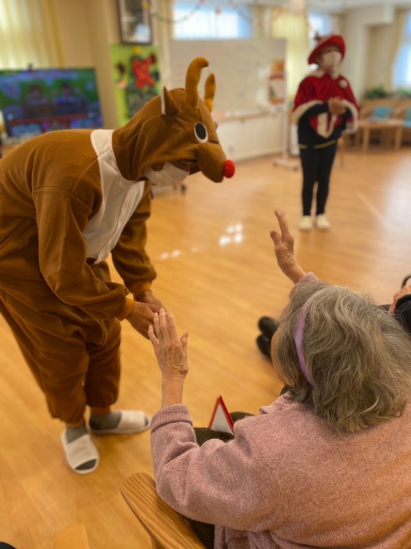今年のクリスマス会は「ケアスタッフによるダンス披露」と「クリスマス会用に用意したレクリエーション」、おやつに「手作りホットケーキ」を用意させていただきました♪