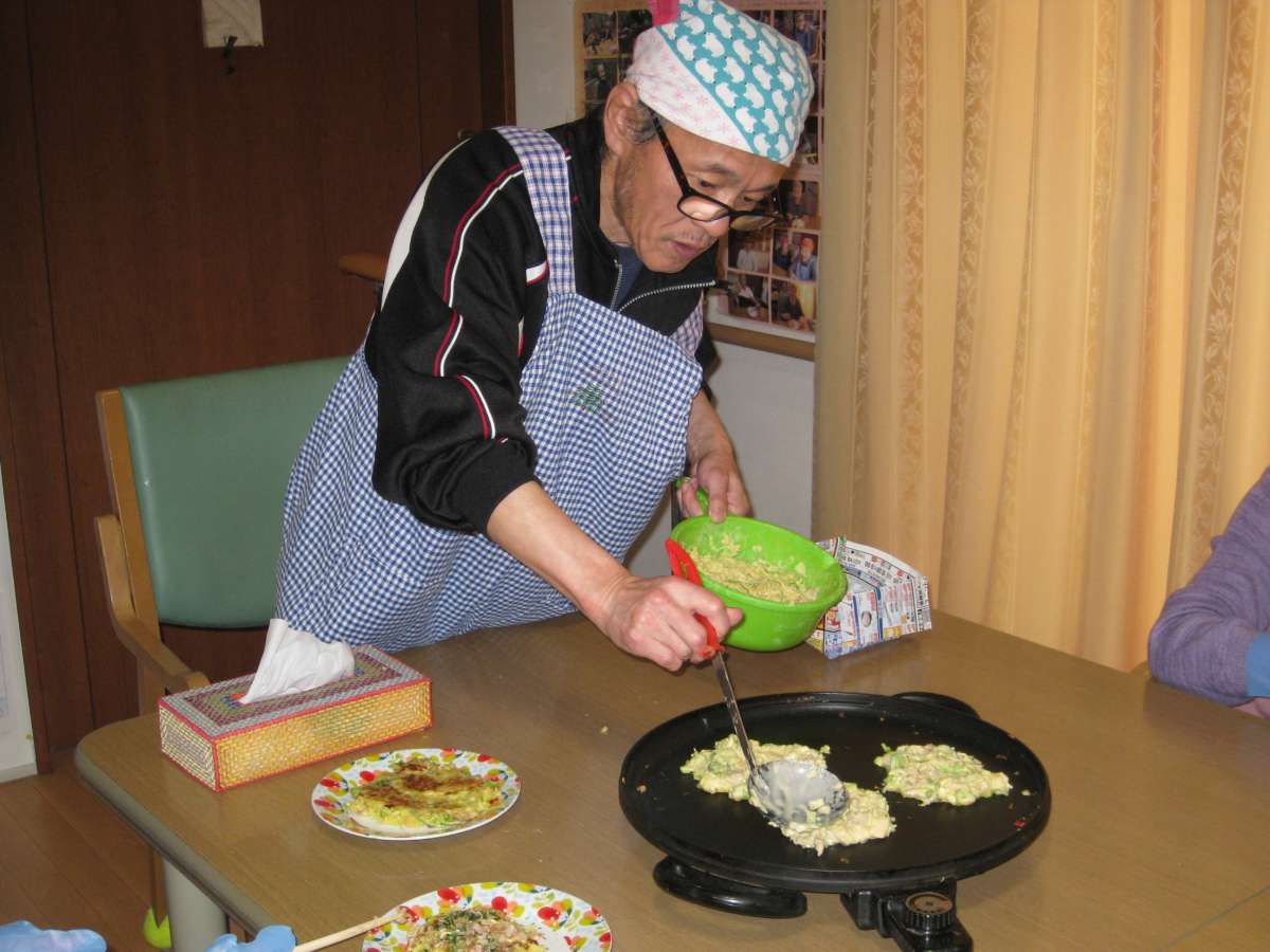 午後は実習生と一緒に、おやつのお好み焼き作りをしました!