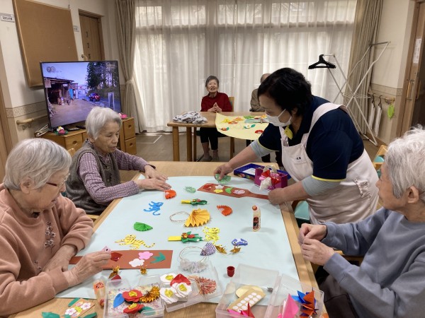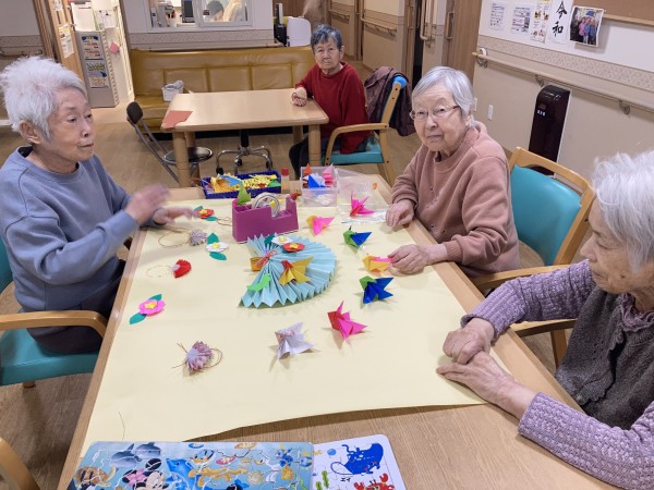 年末を迎え、お正月の壁飾りを皆様に作って頂きました。